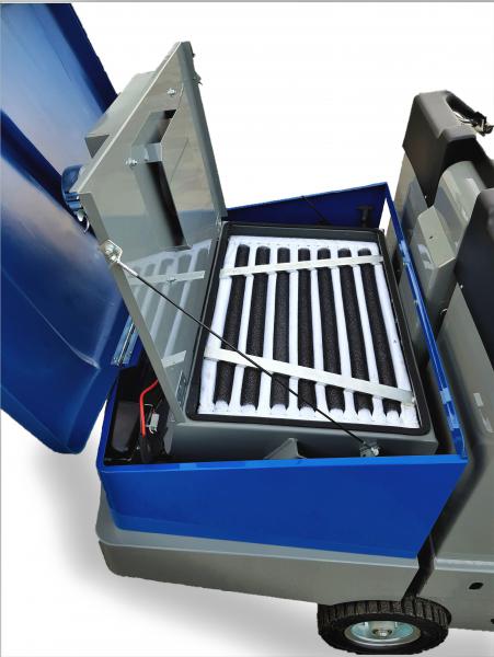 L'altezza di scarico del contenitore rifiuti arriva 1300mm. Scarico alto per facilitare il lavoro. Manutenzione molto facile.